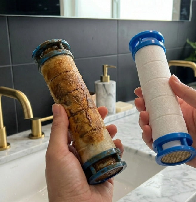93 % des Leitungswassers in Deutschland enthält Chlor, Kalk und Schwermetalle, die sich auf Ihrer Haut und Ihren Haaren ansammeln und sie täglichen Schäden aussetzen wie: